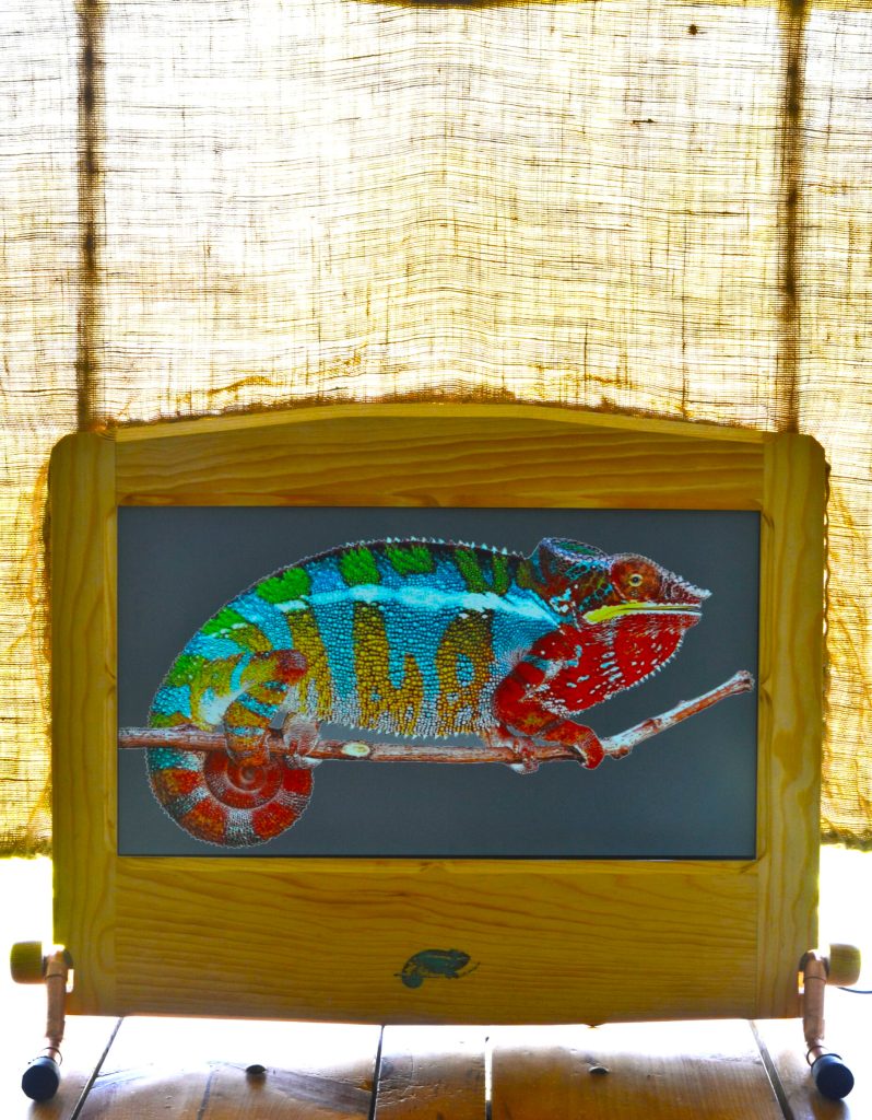 SpectrumView Starlore 27″ Monitor, specially tailored to be backlit by the natural lumen with and with special Sun cloth filter adaptation. 2560 x 1440 (2K), 100Hz, 1ms response time, HDMI, VGA, DisplayPort, 178° viewing angle, VA panel, 8 bit per pixel, semi-glossy finish, external power supply 120/240V. Monitor can also be USB powered with special adapter at request. 75x54x40cm 6.8Kg. You need a window with either direct or indirect sunlight, and preferably without much shadow casting elements, although is easy to get accustomed to them if you do with time. You also need to adapt to the light necessities of the monitor, so most likely rearranging your space will be necessary to be in front of a window, with the Sun cloth filter, otherwise your eyes will not adapt properly to the disproportion of incoming light.