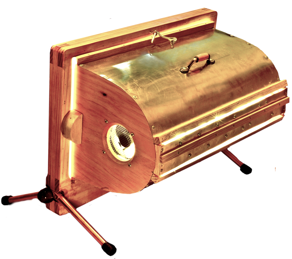 SpectrumView monitors are built to last, made for long working sessions, with quality wood and components, thermally protected by sophisticated airflow cooling design, with genuine brass heat-sink reflectors and high quality low-speed fans, additional EMF shielding available upon request. Copper wiring and strong copper mounts, detachable for transportation or to suspend in front of a window for natural day backlight. The incandescent light bulbs are standard Edison base, size and wattage for household appliances such as ovens, and are not banned since they are not used for general space illumination. Sophisticated brass heatsink airflow cooling design is also the ideal cured meat and fruit dehydrator when placed faced down, with a soft continuously circulating airflow and precise infrared radiation control with little interior heat.